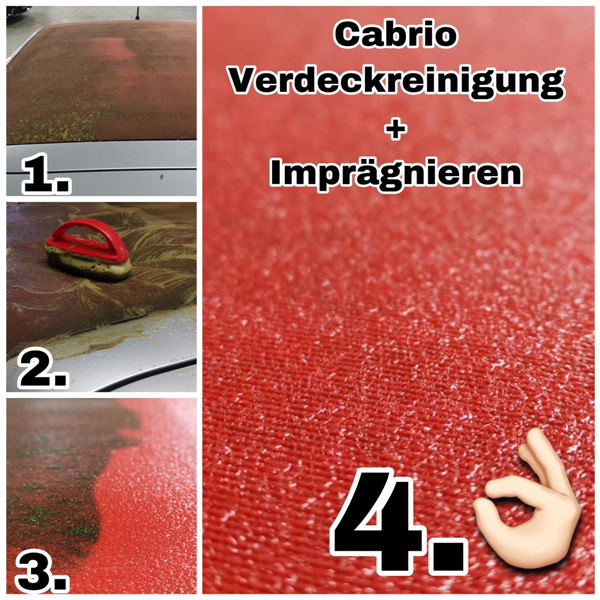 Haben Sie ein Fahrzeug mit einem Cabrio Verdeck welches verschmutzt ist über die Jahre? Wir shampoonieren das Verdeck ein, saugen den Stoff schonend mit einem Nasssauger ab und Imprägnieren es anschließend.