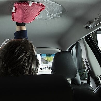 Nach der Außenaufbereitung kümmern wir uns intensiv um den Fahrzeuginnenraum (Fahrzeuginnenraumreinigung / Fahrzeuginnenraumpflege). Dabei fangen wir mit der Himmelreinigung an.